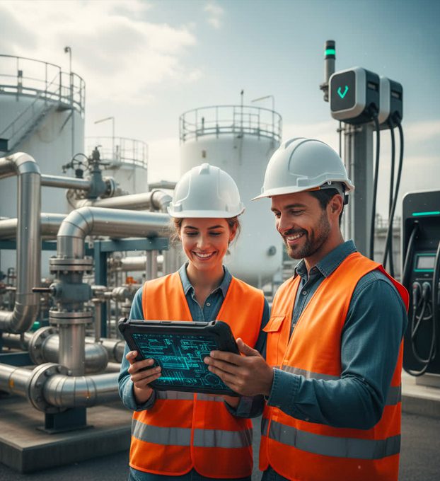 Dans un monde où les enjeux environnementaux sont devenus stratégiques, nous accompagnons les acteurs de l’industrie et de la mobilité dans leur transition vers les énergies décarbonées : biogaz, GNV, hydrogène, bio-carburants, e-Fuel et recharge électrique. Nous mettons notre savoir-faire au service de projets ambitieux, en couvrant l’ensemble de la chaîne de valeur : conception, ingénierie, installation, métrologie, maintenance et exploitation.